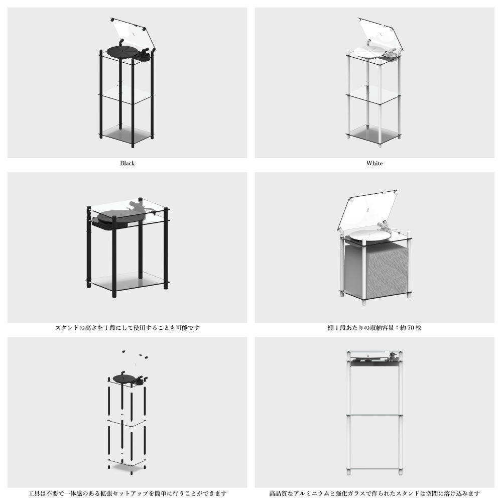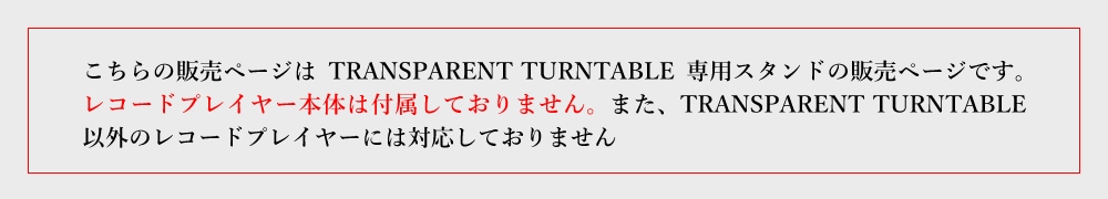 ■TRANSPARENT TURNTABLE専用スタンドの販売ページです。レコードプレイヤー本体は付属しておりません。また、TRANSPARENT TURNTABLE以外のレコードプレイヤーには対応しておりません。
