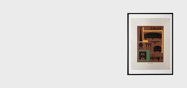 田中一光による「II Palazzo」ロゴとともに、『ホテル イル・パラッツォ』のために制作された家具のシルエットがグラフィカルに並んだデザイン。