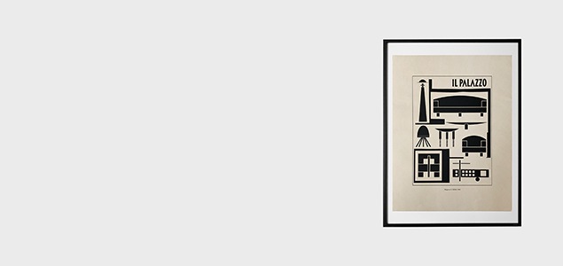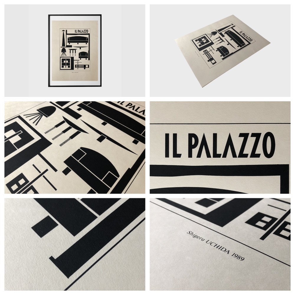 田中一光による「II Palazzo」ロゴとともに、『ホテル イル・パラッツォ』のために制作された家具のシルエットがグラフィカルに並んだデザイン。
