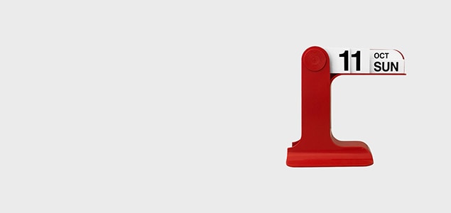 標識や看板を思わせるユニークな佇まいが特徴で、薄いプレートを何枚も重ね、一枚ずつ回転させることで日付を表示する仕組みとなっています。