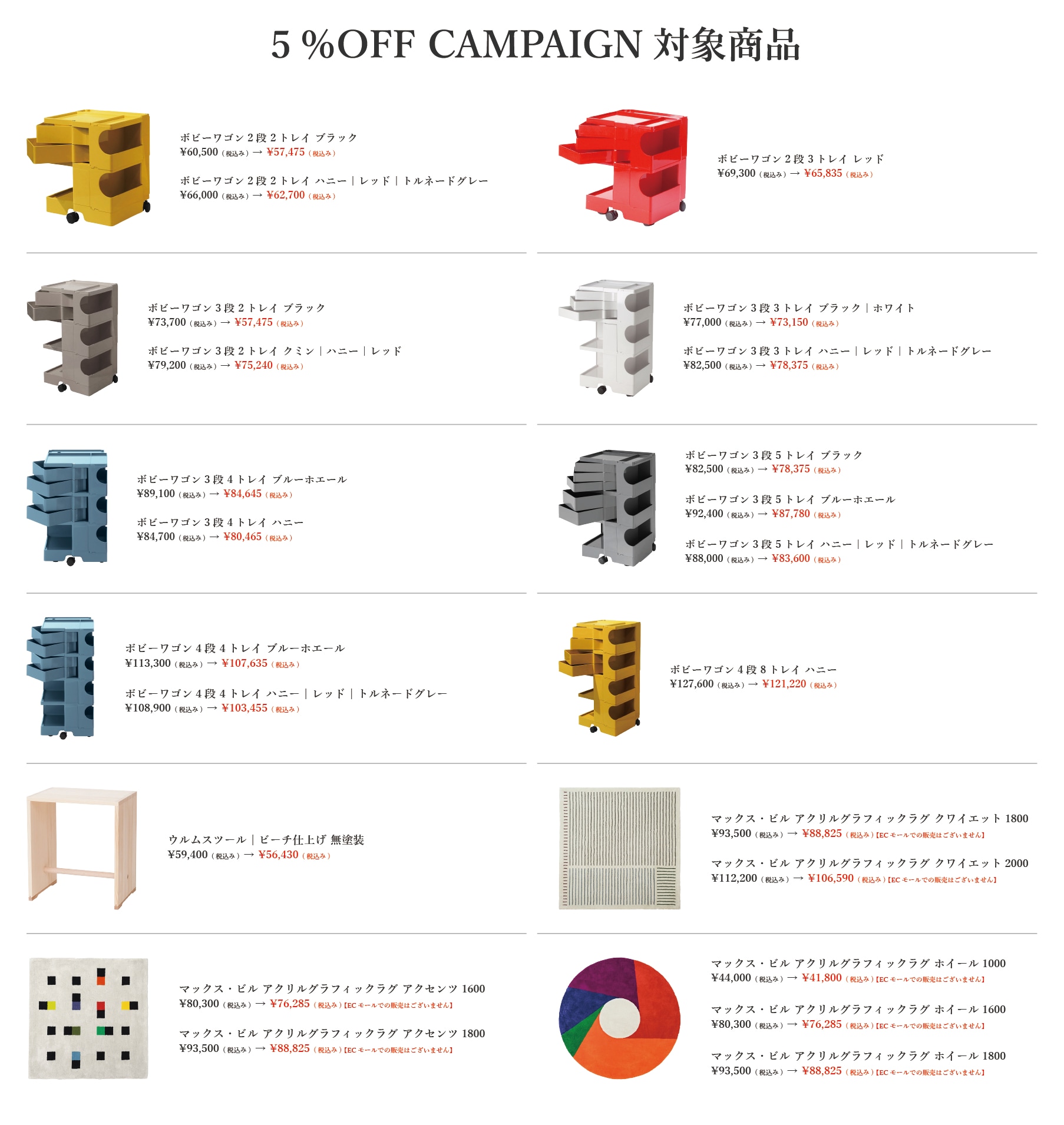 【5%OFF対象】【正規品 保証2年】ボビーワゴン 3段 5トレイ 赤 [ ボビー ワゴン キャスター付き キッチンワゴン キャビネット 収納ワゴン デスクワゴン サイドテーブル 引き出し おしゃれ 美容室 moma ]【ゆうパケット不可】